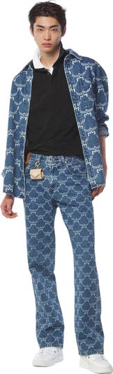 Unisex oversized indigo denim shirt with Lauretos monogram all-over print