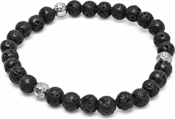 Handcrafted bracelet featuring 6mm lava stones and hypoallergenic stainless steel logo balls. Eco-conscious and handmade, it features a durable elastic strand for easy, comfortable wear. Each piece is unique and may vary slightly in size, shape, and color. Strung with Lava Stone and Stainless Steel, this bracelet adds a refined touch to everyday looks. It's strung on an elastic strand for easy wear. Pair it with a black leather bracelet for a cool, layered look! Please note that all our pieces are crafted by hand and one-of-a-kind, and may therefore vary slightly in size, shape, and color.