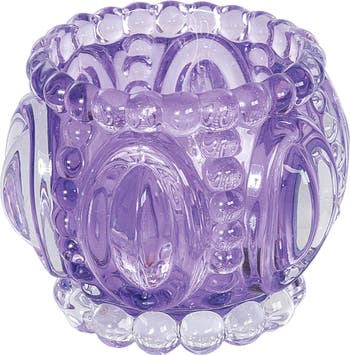 - Crafted from 100 percent glass with intricate molded detailing throughout, this votive holder showcases quality construction with the translucent lavender coloring that catches and refracts light beautifully, creating a lovely warm glow when illuminated with tea light or votive candles inside.