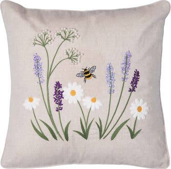 Lavender & Bee Garden Embroidered Woven Throw Pillow, 18" x 18"