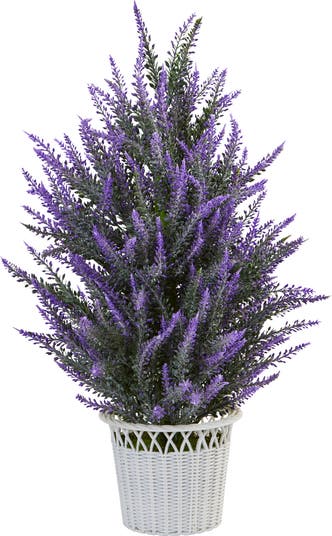 Bring the beautiful scenery of wild lavender flowers into your home with this 22” artificial lavender plant. With lavender petals in both light and darker hues, the plant comes in a white planter. It can add light to any dark space, but it may look best in a kitchen or dining room.