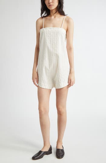 Bode was inspired by a vintage slip from the early 20th century when designing this cotton teddy that reproduces the silhouette in striped yardage recreated from a swatch of antique shirting fabric. This lightweight piece easily converts from a teddy to a slip by unbuttoning the hem.