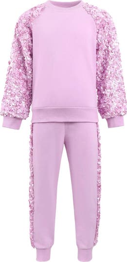Shine bright in this trendy lavender joggers set, featuring dazzling sequin embellishments on the sleeves and down the sides of the pants for a touch of glam. Perfect for casual outings, lounging at home, or any occasion where you want to mix comfort with sparkle.