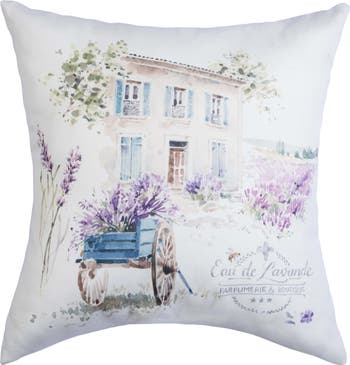 Lavender Wagon Field Village Eau de Lavande Graphic Print Throw Indoor/Outdoor Accent Pillow, 18" x 18"