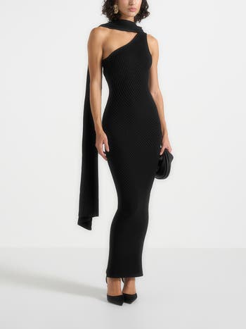 Laya Asymmetric Knit Midaxi Dress With Scarf