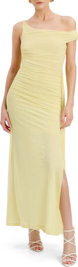 Rippled ruching and a kiss of stretch enhance the figure-skimming silhouette of this shoulder-baring gown accented with an elegant side drape for graceful movement.