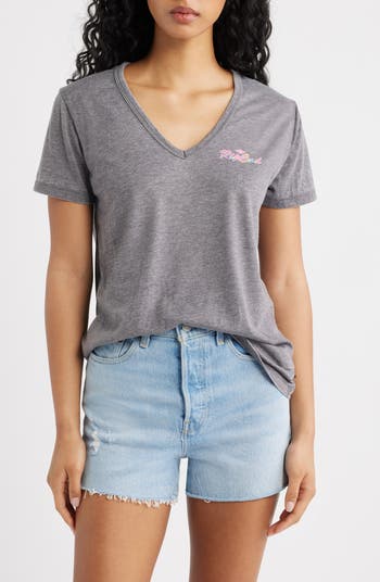A soft heathered T-shirt is kissed with cotton and stamped with surf-inspired logo graphic.