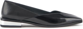 The Layer Lo is a sophisticated pointed-toe flat with a sleek colorblock design, a geometric block heel, and a lengthening topline.