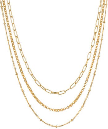 When we are aligned in our mind, body, and spirit, our multifaceted beauty shines out into the world. A 3-in-1 chain necklace in 18kt gold plate creates a perfectly layered look for effortless, everyday wear.