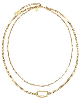 Get a layered look with this gleaming curb-chain necklace centered by a polished carabiner charm.