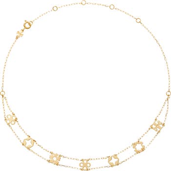 Doubled-up strands of ultraslender chains frame an assortment of dainty geometric hardware, bringing a glimmering finish to casual and professional ensembles alike.