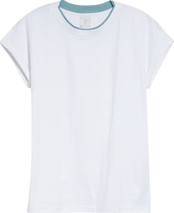 A layered look enhances the laid-back luxury of a dolman-sleeve T-shirt made in Italy from soft cotton jersey.