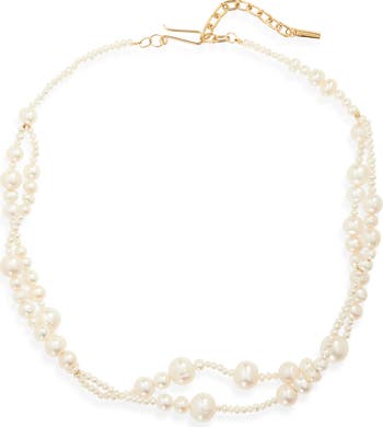 Dual strands of lustrous freshwater pearls of varied sizes twist and twine reimagining this classic necklace.