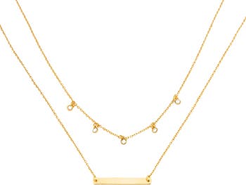 As seen in the Spring 2020 CAUSEBOX. A double chain duo featuring a sleek bar and five sparkly gems, you're well on your way to nailing a timeless layering look as our LAYERED GEM NECKLACE does the work for you.