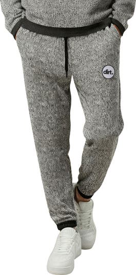 Lounge in style with these tapered, subtly patterned sweatpants trimmed with solid elastic openings that create a layered look.