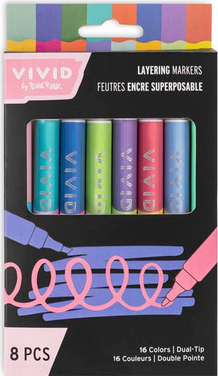MARKERS: LAYERING - Unlock the magic of layered color with the Layering Markers! DOUBLE SIDED MARKERS: This set includes 8 dual-tip markers (16 colors total) uniquely designed to help you achieve dynamic layered effects. One end features a chisel tip ideal for laying down bold base colors, while the other features a precision round tip that lets you overlay strokes for added detail, depth, and dimension. EXPERIMENT: With this clever dual-tip design, you can easily experiment with texture, shading, and layering techniques that bring your work to life—without the need for extra tools. MIXED MEDIA USE: Whether you’re a beginner or seasoned artist, these markers are perfect for mixed media, bullet journaling, illustration, and DIY projects. The versatile color palette blends effortlessly, while the layering capability opens up endless creative possibilities. Safe and non-toxic, this set conforms to ASTM D-4236 standards. Double the tips means double the versatility—perfect for artists who love to explore and push their creative limits. INCLUDES: 8 dual-tip markers.