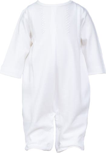 Buttery soft long sleeve one piece in jersey fabric with an intricately hand embroidered design. The perfect outfit for sensitive newborn skin