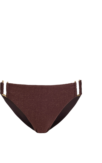The Layla Hipster Bottom offers a sleek, low-rise fit that elongates the torso for a flattering, effortless look. With medium cheek coverage, this hipster style strikes the perfect balance between comfort and confidence. The subtle gold "U" trim adds a modern, polished touch, making it a standout addition to your swimwear collection. Pair it with a matching solid or printed top for a chic, coordinated look.