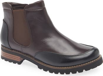 A lug sole adds just the right element of utilitarian attitude to a must-have Chelsea boot shaped from burnished leather.