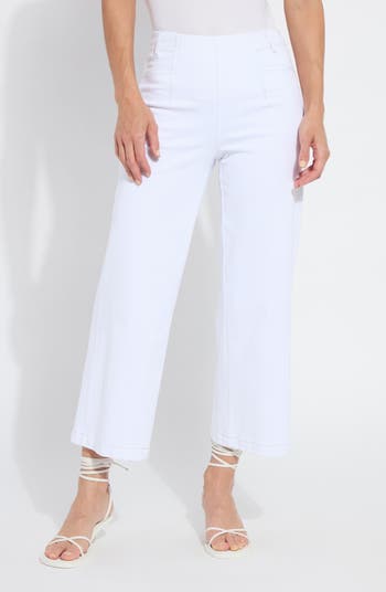 The perfect mix of comfy and tailored, these pull-on jeans feature cropped wide legs, stretch-knit denim and a hidden smoothing waistband for a sleek look.