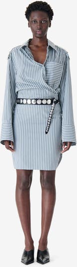 The Lazul Poplin Shirt Dress offers a conceptual twist on a wardrobe classic, featuring a dynamic wrap-front construction and an oversized, architectural silhouette that effortlessly deconstructs traditional shirting.