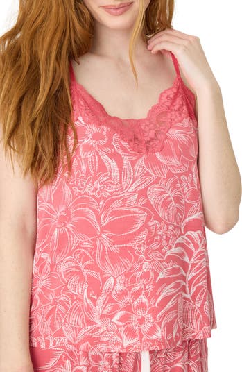 Sweet dreams start when you slip on this camisole cut from a supersoft flower-tossed knit and finished with a bit of pretty lace trim.