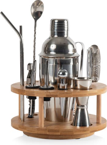 Budding mixologist? Veteran cocktail-whisperer? Either way, your home bar is not complete until it includes the Lazy Susan Bar Tools set. This home bar kit includes a shaker, a twisted stem cocktail spoon with hammer, corkscrew, straight straw, bent straw, 2 liquor pourers, 1 stopper, a double-sided jigger, a hawthorne strainer, tongs, and a muddler with plastic head. With 12 essential bar tools conveniently stored in a handsome and space-saving lazy susan, it’s time to level up your cocktail game.