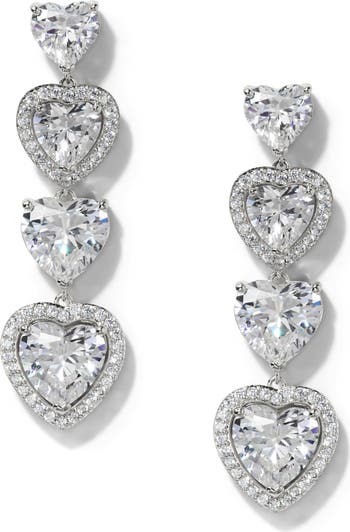 Solo and haloed heart-shaped cubic zirconia adorn these drop earrings that bring instant sparkle and glamour to your look.