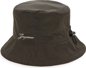 Chart a course for bold sartorial adventures in this sporty nylon bucket hat with a drawcord toggle threaded through a leather eyelet, letting you cinch the shape to your perfect fit.