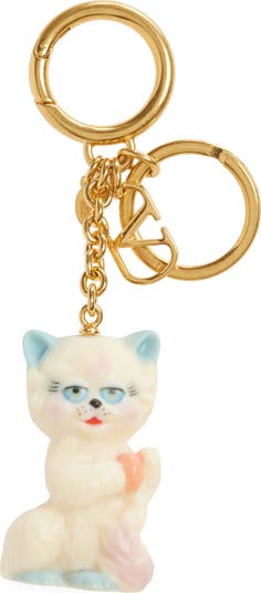 The cat craze continues at the house of Valentino with this kitschy key-chain bag charm, where Le Chat de la Maison prowls alongside polished VLOGO hardware based on an archival emblem from 1979.