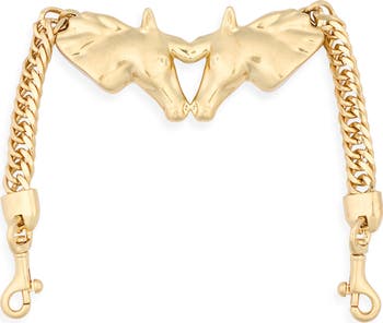Add a polished and practical accessory to your favorite bag with this clip-on chain centered with a double horse head charm.