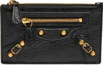 Glossy, crackled lambskin leather and antiqued stud hardware from Balenciaga's Y2K-coded Le City collection bring high fashion to this scaled-down card case.