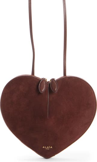 A sculptural heart-shaped silhouette defines this compact goatskin-suede bag that completes your look with a playful flourish.