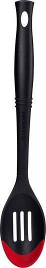 Le Creuset reimagines cooking and serving utensils with ingenious results, combining strength and flexibility through the silicone and glass-reinforced nylon construction. This indispensable slotted spoon features a malleable edge to ensure a seamless scoop, along with a durable bowl for easy draining. Grip rings accent the elliptical, heat-resistant handle to further improve comfort and control.