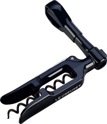 The compact Pocket Model features Le Creuset's original self-pulling corkscrew, with a revolving handle that turns effortlessly with just one finger. The multi-use design features a retractable stainless steel foil cutter and bottle opener. - Color: black - Handle detaches and stores inside body to protect screw - Multi-use design features a retractable foil cutter and bottle opener - Hand-sharpened, triple-coated stainless steel screw - Cork guides ensure stable and vertical cork removal - Imported Orders cannot be shipped to Canada, Alaska, Hawaii, Puerto Rico or P.O. Boxes.