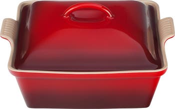 Signature triple-ring detailing marks this classic square stoneware casserole that delivers even temperatures and prevents scorching for food that's cooked perfectly every time. Safe for the freezer, microwave, oven, broiler and dishwasher, it's an all-around star player, and it looks beautiful on your table, as well. The dense stoneware helps block moisture absorption to prevent cracking, and the impermeable exterior enamel resists scratches and stains. Best of all, the glazed interior easily releases food for a quick cleanup.