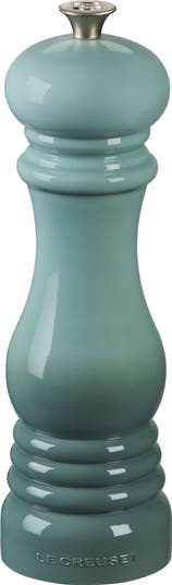 Signature Le Creuset colors and triple-stripe detailing add refined touches to a sturdy salt mill. The top knob adjusts to create a finer or coarser grind for perfectly seasoned dishes.