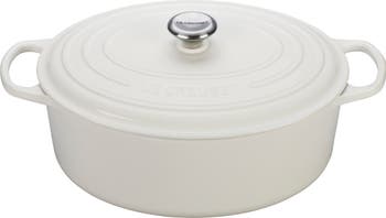 Nothing matches the even heat distribution and versatility of cast-iron cookware. This enameled French/Dutch oven offered by Le Creuset delivers all of the benefits of cast iron while allowing you to safely let your dishwasher do the cleanup after you’re done cooking—no more steel-wool scrubbers! Able to handle soups without scorching, sear meats perfectly or bake bread and more, you'll find yourself reaching for this kitchen workhorse again and again. Oversized ergonomic handles let you transfer the piece from stovetop and oven to dishwasher with ease, and built-in lid stabilizers provide a secure, no-slide fit in the oven. The sand-colored interior makes it easy to monitor food as you're cooking, and the colorful enameled exterior resists chipping and cracking to keep your cookware looking new.