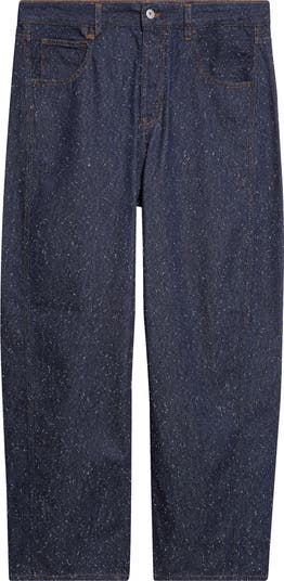 Flecked indigo brings utility-inspired style to these stretch-kissed denim jeans designed in a mid-rise silhouette with curved outseams for a sculptural effect.