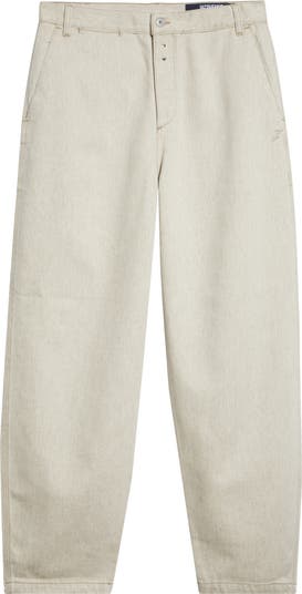 Celebrating his French‑countryside childhood, Simon Porte Jacquemus elevates all things rugged and rustic in his 'Le Paysan' collection—enter these relaxed straight-leg jeans cut from hemp-enriched nonstretch denim, then signed with a monogrammed 'J' in elegant embroidery.