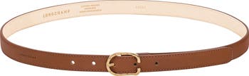 Logo-debossed hardware lends signature appeal to a rich leather belt that will complement your polished looks.