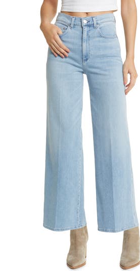 Flaunt retro-chic style in these fabulous light-wash jeans featuring a high rise and ankle-grazing wide legs.