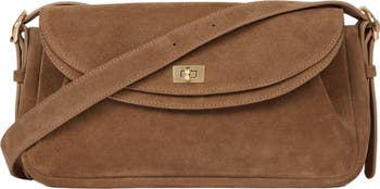 Suede leather bag with double flap featuring a swivel clasp and a strap for shoulder and crossbody carrying.Dimensions: Length : 31cmHeight : 10.5cmWidth : 15cm