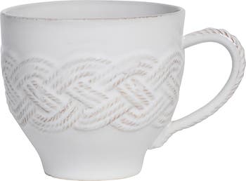 The mystic knot, a pattern long cherished by fishermen as a symbol of protection, love and a long, happy life, decorates this vintage-washed mug that's a beautiful way to serve friends and family.