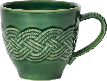 The mystic knot, a pattern long cherished by fishermen as a symbol of protection, love and a long, happy life, decorates this vintage-washed mug that's a beautiful way to serve friends and family.