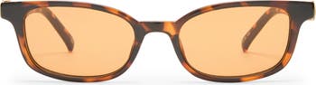 Lenses tinted in a dark, smoky hue lend a mysterious touch to these rectangular sunglasses that embody the minimalist vibe of the '90s.