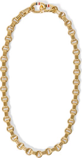 Enameled bands add a subtle pop of color to this contemporary-chic goldtone chain necklace.