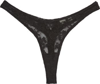 Stretchy lace furthers the easy romance of this stretch-silk-trimmed thong.
