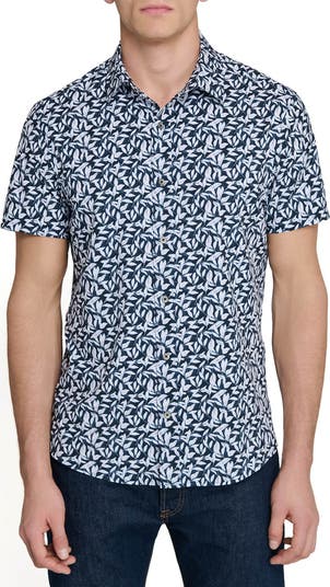 Stretchy, sweat-wicking fabric made in part with recycled fibers keeps you moving comfortably day and night in a short-sleeve button-up that dries quickly and resists odors to help you look and feel fresh.