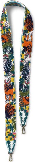 Luxuriate in the beauty of our Leafy Embroidered Strap in black, crafted with multicolored leaf embroidery, beading and sequins that will add a touch of sophistication and glamour to your accessories. This strap effortlessly attaches to your favorite bags and phone cases, transforming them into truly unique pieces that express your individual style.